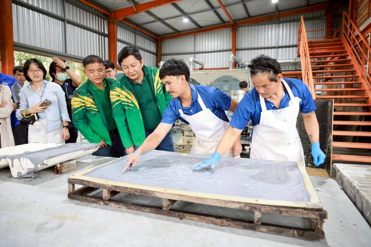 นายไพศาล หงษ์ทอง รองผู้จัดการ ธนาคารเพื่อการเกษตรและสหกรณ์การเกษตร (ธ.ก.ส.) ลงพื้นที่เยี่ยมชมการดำเนินงาน บริษัท สไมล์ รับเบอร์ จำกัด เกษตรกรลูกค้า ธ.ก.ส. หัวขบวน จังหวัดระยอง ภายใต้ “โครงการยกระดับสินค้าเกษตรสู่สินค้า Glam Agro” ซึ่งเริ่มต้นจากการรวมตัวกันของเกษตรกรผู้ปลูกยางพาราที่เล็งเห็นถึงปัญหาราคายางพาราผันผวนและกระทบต่อรายได้ทำให้หันมาจัดตั้งกลุ่มวิสาหกิจชุมชนบ้านเนินสว่างเพื่อรับซื้อผลผลิตยางพาราธรรมชาติจากเกษตรกรในพื้นที่มาแปรรูปเป็นผลิตภัณฑ์ต่างภายใต้แบรนด์Kaika (ไก่กา)อาทิหมอนยางพาราที่นอนและเบาะนั่งสมาธิที่มีจุดเด่นด้านความปลอดภัยต่อสุขภาพรองรับสรีระตามหลักการยศาสตร์ปราศจากสารเคมีที่ก่อให้เกิดภูมิแพ้และเป็นมิตรต่อสิ่งแวดล้อมจนกลายเป็นสินค้าที่ได้รับการยอมรับในตลาด