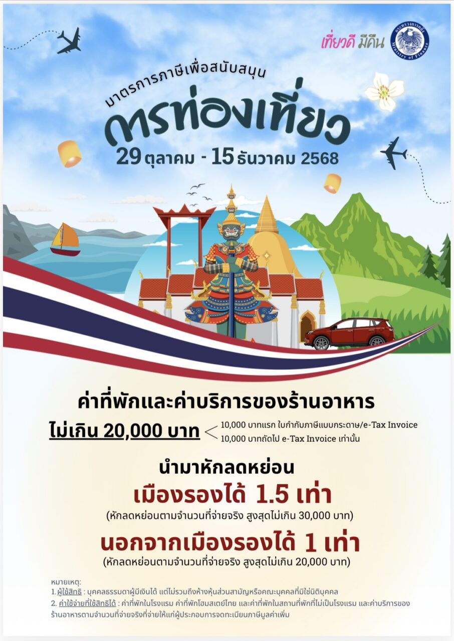 มาตรการภาษีเพื่อสนับสนุนการท่องเที่ยว “เที่ยวดี มีคืน” ได้ผ่านความเห็นชอบจากคณะรัฐมนตรีเมื่อวันที่ 21 ต.ค.68 ที่ผ่านมาแล้ว โดยให้ประชาชนที่เสียภาษีได้สิทธิประโยชน์ ท่องเที่ยวในประเทศลดหย่อนภาษีทั้งจังหวัดเมืองหลัก และเมืองรอง