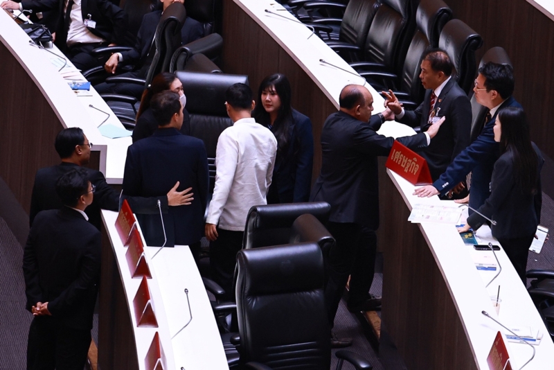 สส.พรรคประชาชน ยืนยันว่า การเดินไปทาง สส.กลุ่มดังกล่าว เว้นระยะห่างอย่างน้อย 1 แถวเพื่อพูดคุย แต่สิ่งที่เกิดขึ้นหลังจากนั้นคือ สส.ทั้ง 3 คนลุกขึ้นยืนและเดินออกมาจากที่นั่ง พยายามส่งเสียงโวยวาย จึงทำให้มีเพื่อนๆ สส.คนอื่นเดินเข้ามาห้ามปรามทั้ง 2 ฝ่าย ทั้งที่จริงๆ แล้วยังไม่มีเหตุการณ์ที่จะใกล้เคียงการปะทะใดๆ