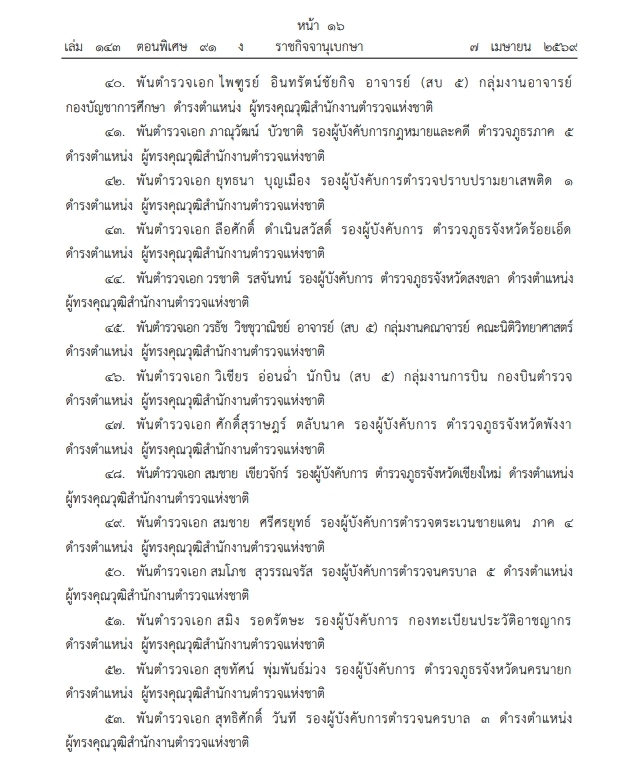 มีพระบรมราชโองการโปรดเกล้าโปรดกระหม่อมแต่งตั้งข้าราชการตํารวจให้ดํารงตําแหน่งต่างๆ จํานวน 60 ราย ดังนี้